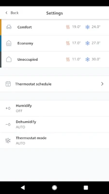 With the Siemens Smart Thermostat app you can: - See and change your room temperature and humidity level - Check the air quality level in your room - Set a time schedule for every day of the week, with temperature set points of your liking - View your room comfort & energy history