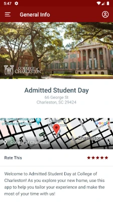 Welcome to the College of Charleston! This app is your guide to information about events on campus.