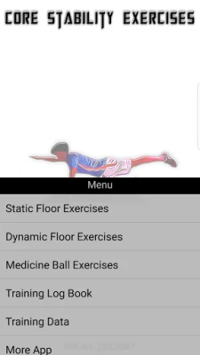 Ther are 5 Menu 1. Static Floor Exercises 2. Dynamic Floor Exercises 3. Medicine Ball Exercises 4. Training Log Book 5. Training Data