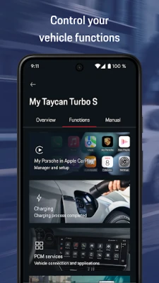 The My Porsche app is the ideal companion for your Porsche experience. Call up the current vehicle status at any time and control Connect services remotely. The app is constantly being developed and additional features will be added in the next versions.