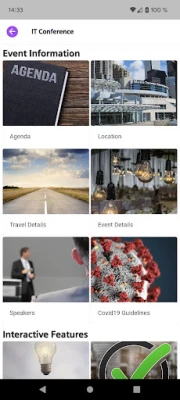 All available events are listed in an overview screen and can be selected individually for more detailed information. This includes experience-enhancing content such as agendas and conference schedules as well as feature pages on highlight topics such as major exhibits and special guests. Users can post to the newsfeed, book their workspaces and sessions directly from the app and can see who is participating with them.